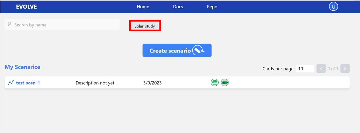 The user can filter their scenarios with the label buttons at the top of the Manage Scenarios Page.