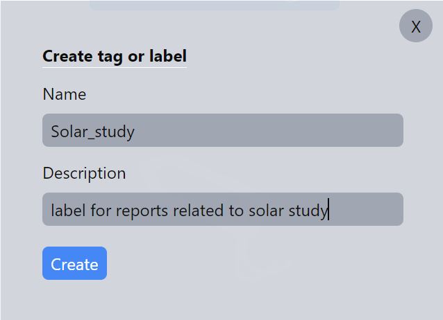 Use the create label button, add a name and description, and then one can add this label to scenarios using the grey plus icon on the report toolbar. These labels can be used to filter a large number of scenarios.
