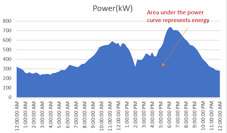 Energy consumption is sum of power consumption at all time steps multiplied by time resolution. Note energy consumption shown in evolve dashboard is actually net energy consumption so negative value means energy is injected back to the grid. Default unit for energy consumption is MWh. Mathematically energy consumption is rereseneted as below. Here \(p_t\) is power consumtion at time \(t\) and \(\delta T\) is time resolution in hour.