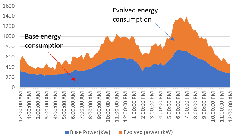 Energy reduction is percentage reduction in net energy consumption in evolved (or new) load profile compared to base or reference profile.