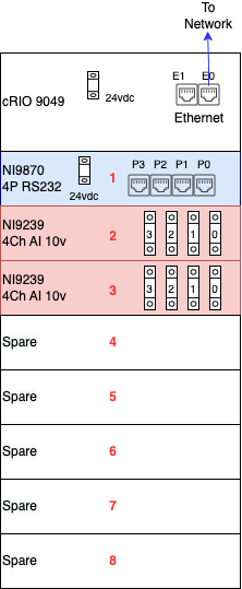 An example diagram of a cRIO with I/O modules for MODAQ:RD is shown to the right.