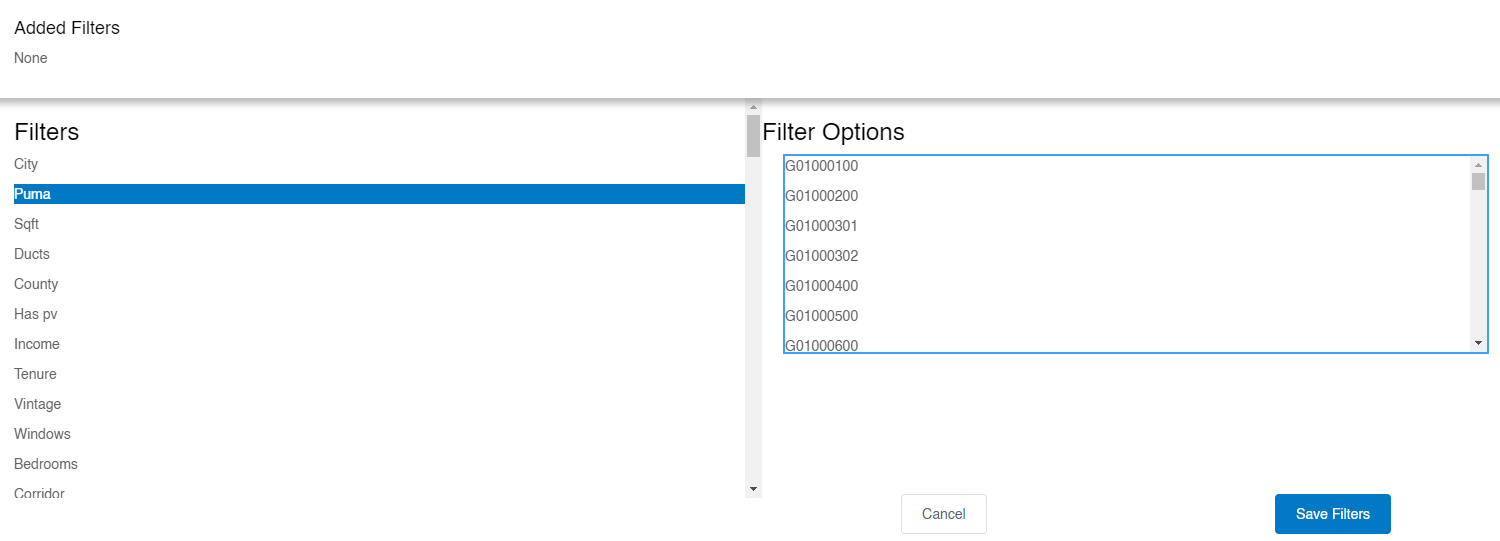 Want to learn how to convert your geography into the right ResStock format? Examples are provided below on how to find the 2010 PUMA. After converting your geography into the right format, use the Check That You Have Enough Samples or Dwelling Units with the Data Viewer tutorial with the Data Viewer example to make sure your region is broad enough to draw conclusions from; otherwise your sample size is too low and you could have a large margin of error in your results.