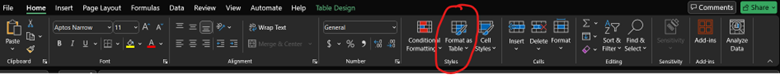 Going back to the CO_baseline_metadata_and_annual_results.csv file, and click Format as Table so we can perform our filter.
