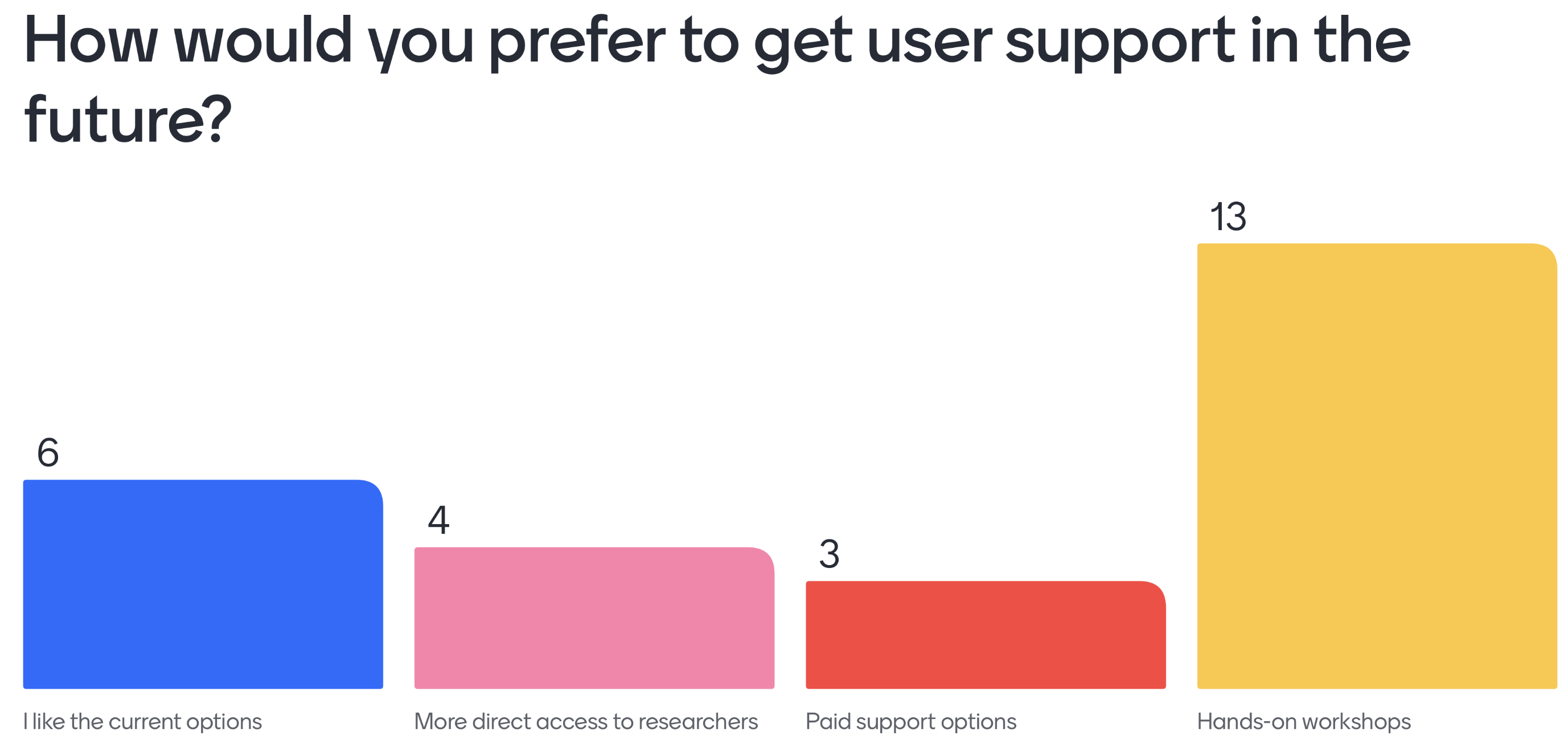 From the polls, “community forums” were voted as the user-support option that is more desired