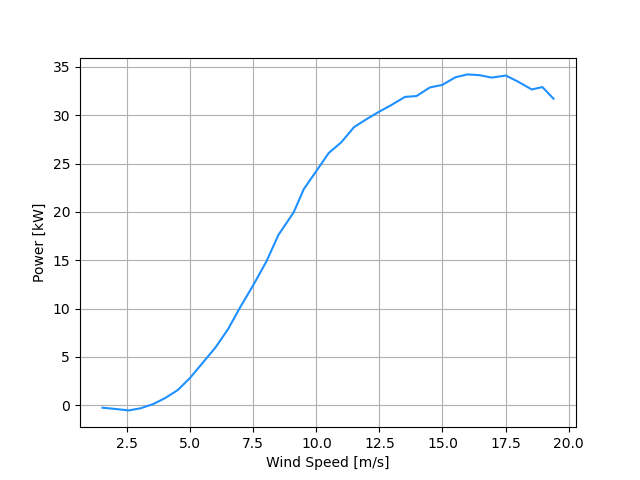The performance data comes from a power performance test conducted by the Small Wind Certification Council (SWCC) 1.