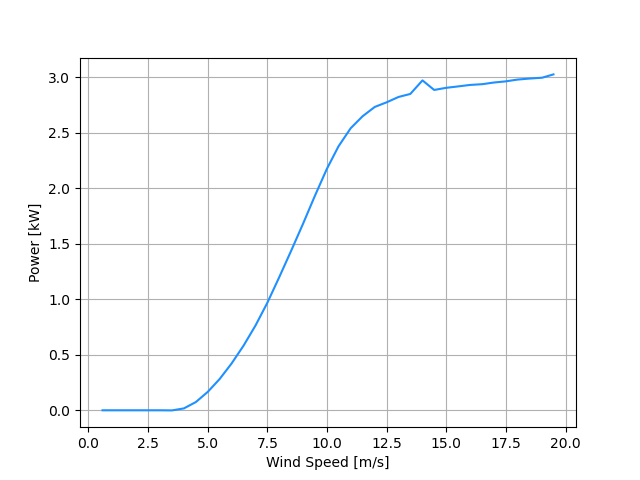 The performance data comes from a power performance test conducted by the Small Wind Certification Council (SWCC) 1.