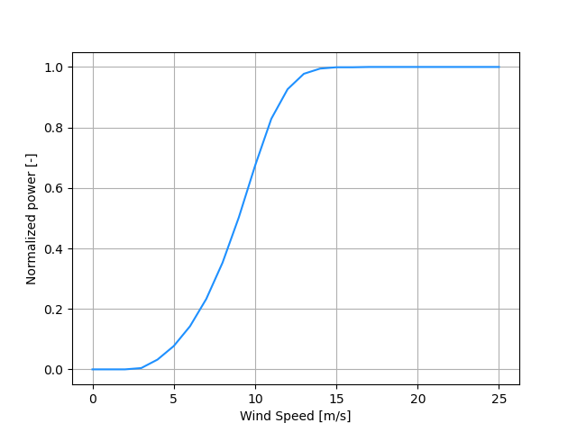 Normalized IEC Class 1 power curve comes from a report validating power output for the WIND Toolkit 1. The report presents normalized power curves, but assumes 2MW turbine ratings and 100m hub heights for modeling in the report. Cp values are not available since rotor diameters are not included.